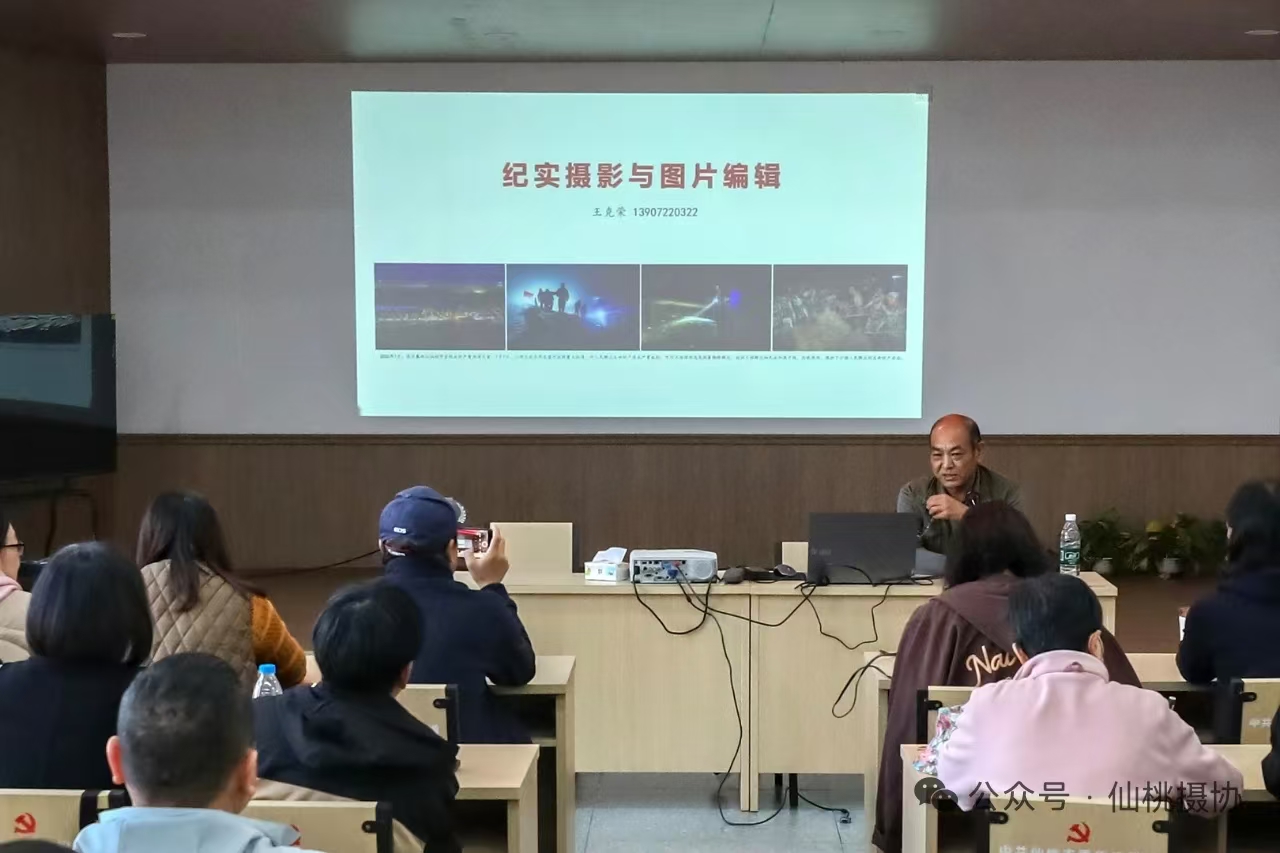 6、2025年11月16日,市摄影家协会2025年摄影培训班在结对共建袁市村迎来了一堂别开生面的纪实摄影课程。此次课程由市摄协主席王克荣授课,主题为《纪实摄影与图片编辑》,近30名学员参加了学习。