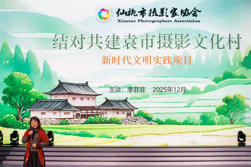 11、2025年12月30日,仙桃市新时代文明实践项目大赛在市融媒体中心演播大厅举行。经过激烈角逐,由仙桃市摄影家协会副主席兼秘书长李菲菲主讲的“结对共建袁市摄影文化村”项目,以93.07分的优异成绩斩获第二名,荣获银奖。该项目以丰富村民精神文化生活、助力乡村文化振兴为目标,通过组织摄影志愿者送服务下乡,开展免费全家福拍摄、摄影技能培训、主题创作等系列活动,让摄影艺术走进乡村。